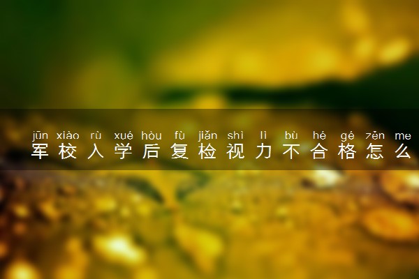 军校入学后复检视力不合格会给予一定的时间调整,视力也会随着身体状态波动;如果视力是在不合格会考虑调整到视力没那么严格的专业;都不行的话会退回到地方大学。地方大学不接收的话要退回原籍重新高考。
