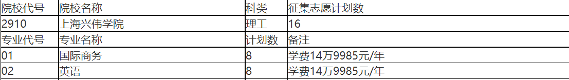 根据我们在安徽省教育考试院查询到的院校招生详情来看:上海兴伟学院的确国际商务、英语两个专业学费为14万9985元/年。