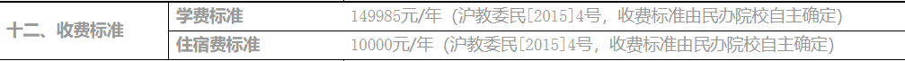 此外根据我们在学校官网上获得的数据来看:学校自主确定的学费标准为149985元/年,住宿费10000元/年。