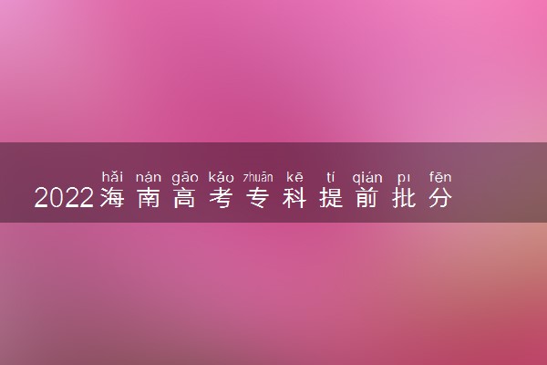 2022海南高考专科提前批分数线是多少?2022海南提前批专科院校有哪些?海南提前批专科院校投档线是多少?本文为大家整理了2022年海南高考专科提前批录取院校名单及分数线,含普通批、体育类、美术类、声乐类、舞蹈类、主持与播音类、书法类等平行志愿院校专业组在高职(专科)提前批的投档分数线。