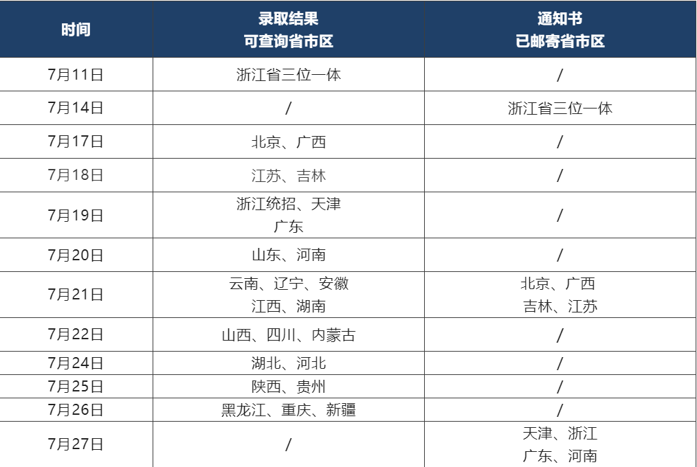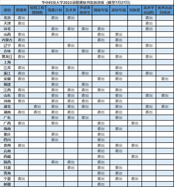 以下是部分高校在全国各省的发放通知书的时间以及进程: