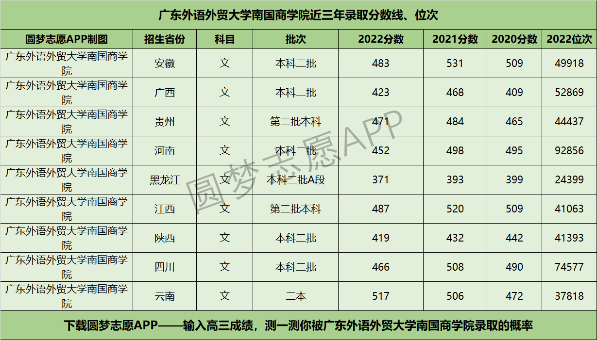 四、广东外语外贸大学南国商学院近年录取分数线及位次【首选历史版】