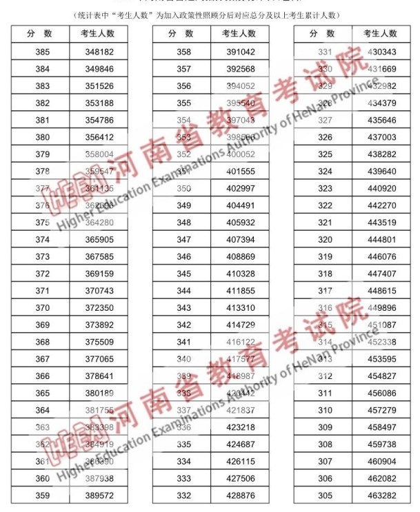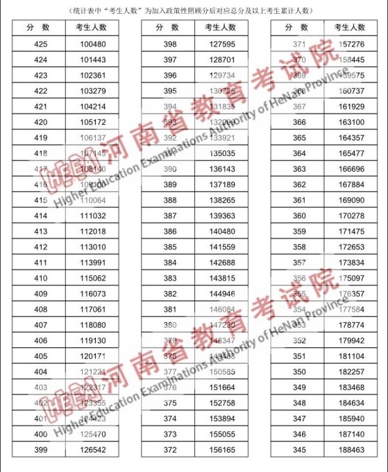 “一分一段”是以“一分”为单位,统计考得该分数的考生人数和累计人数,每一个分数段上有多少人一目了然。河南考生通过分数分布表可以查询到相关成绩在全市的排名位次,方便对自己进行定位。