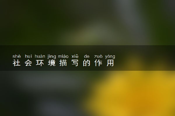 社会环境描写的作用一是交代人物的生存环境;二是交代人物的社会关系;三是交代作品的时代背景。社会环境对小说有非常重要的作用,可以衬托出主人公,同时也可反映出当时的社会环境,为下一步埋下伏笔。