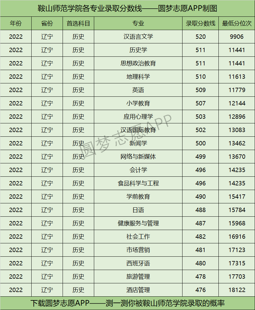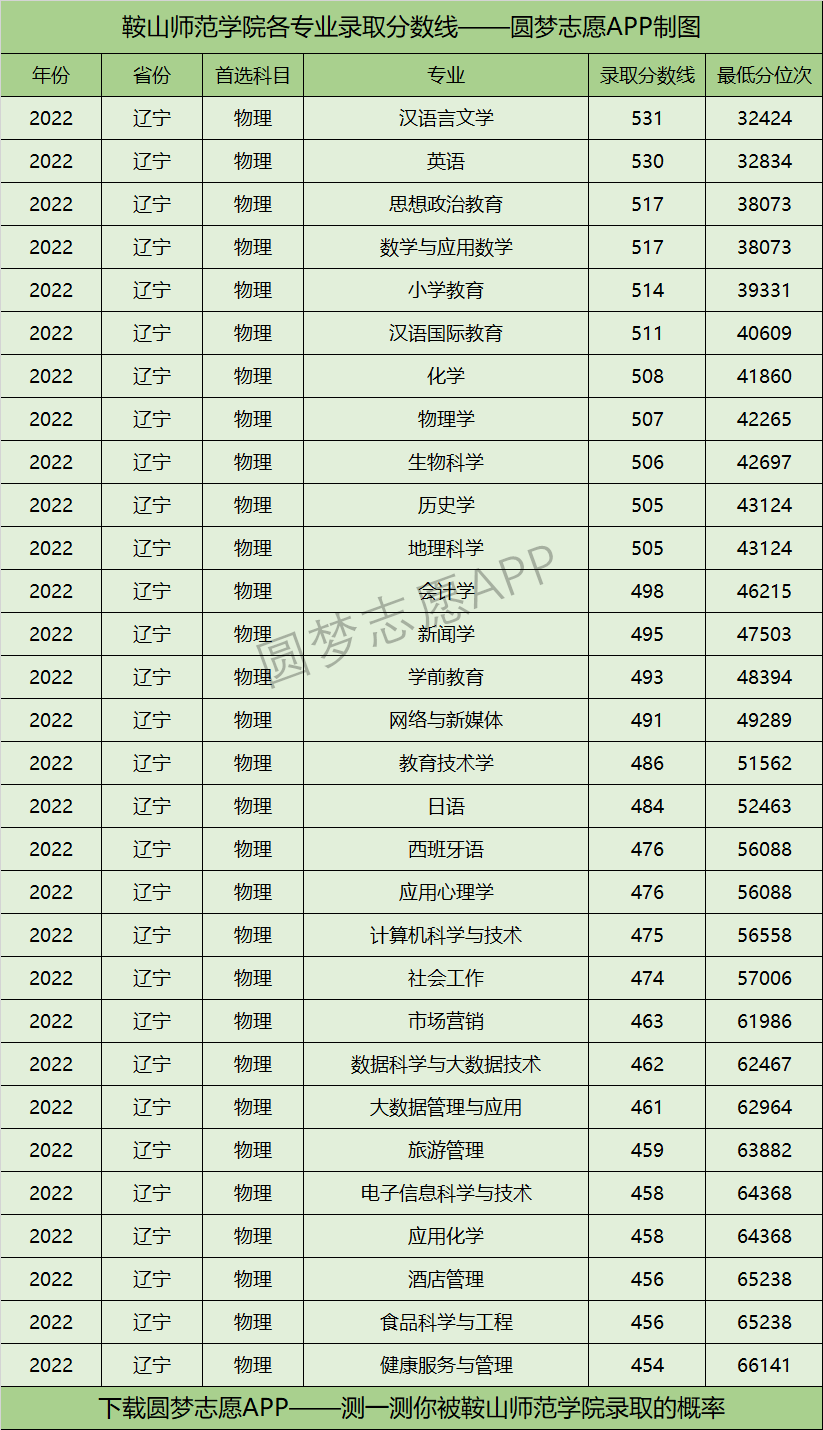 鞍山师范学院各专业录取分数线2022年是多少分?鞍山师范学院的最低分位次在全省排名多少?