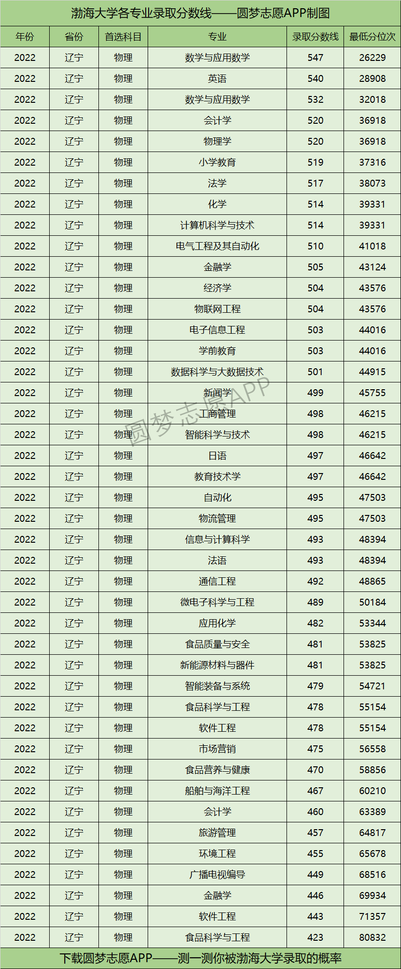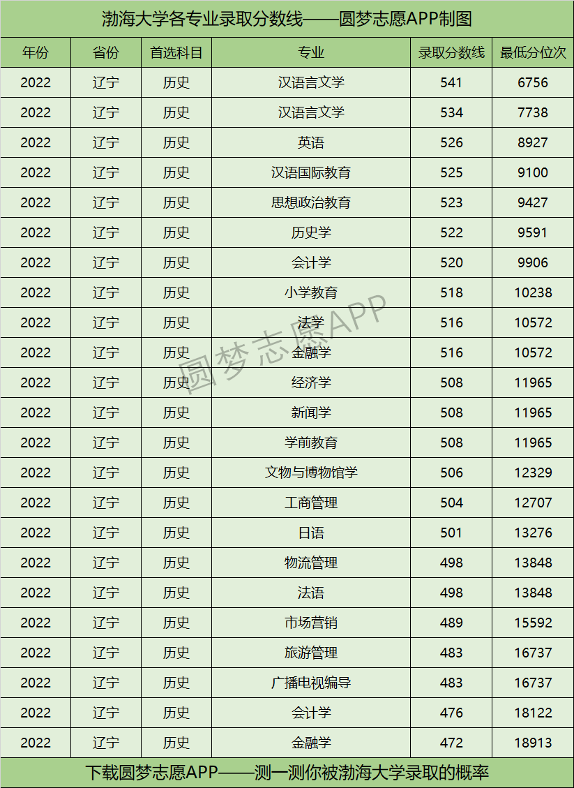 渤海大学各专业录取分数线2022年是多少分?渤海大学的最低分位次在全省排名多少?