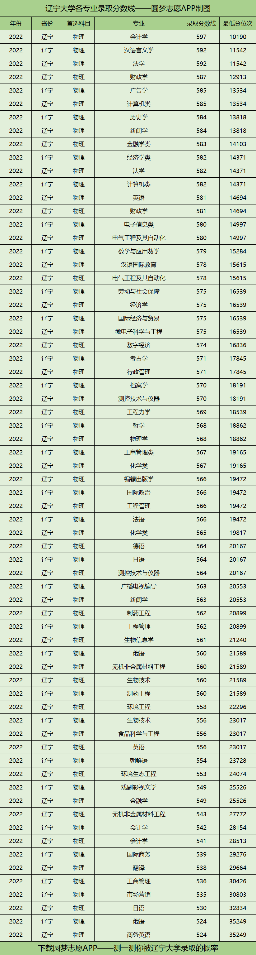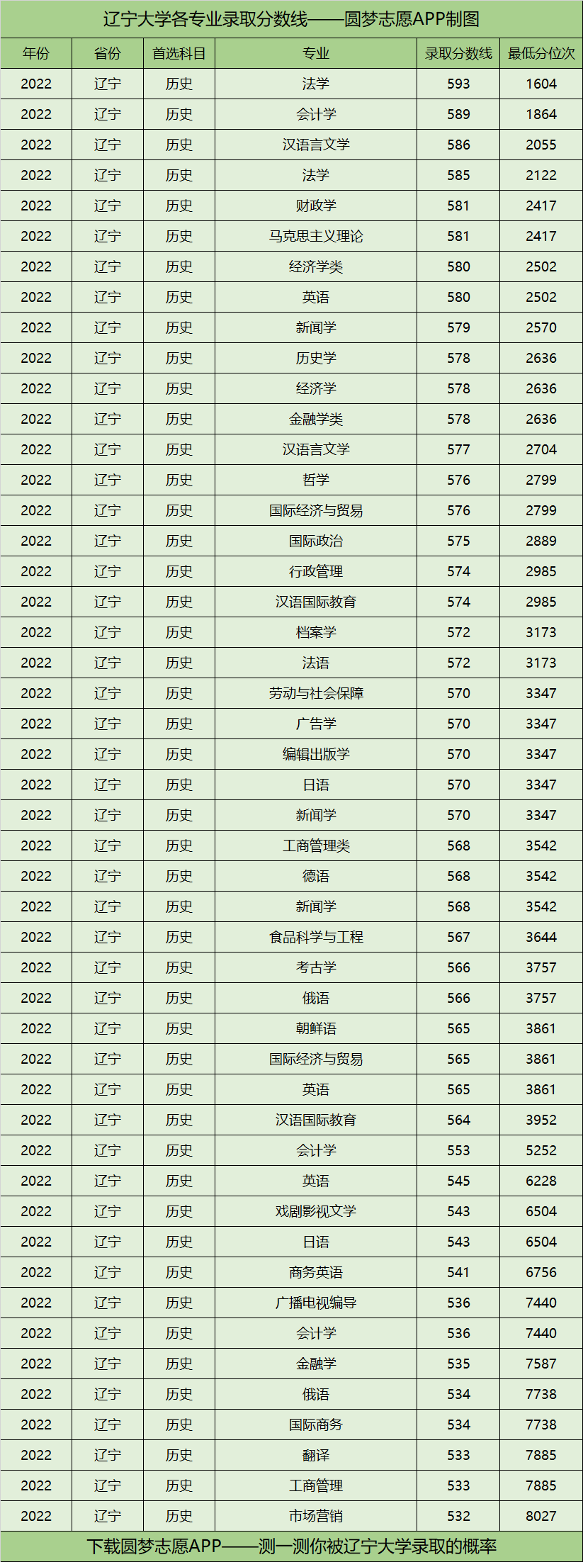 辽宁大学各专业录取分数线2022年是多少分?辽宁大学的最低分位次在全省排名多少?