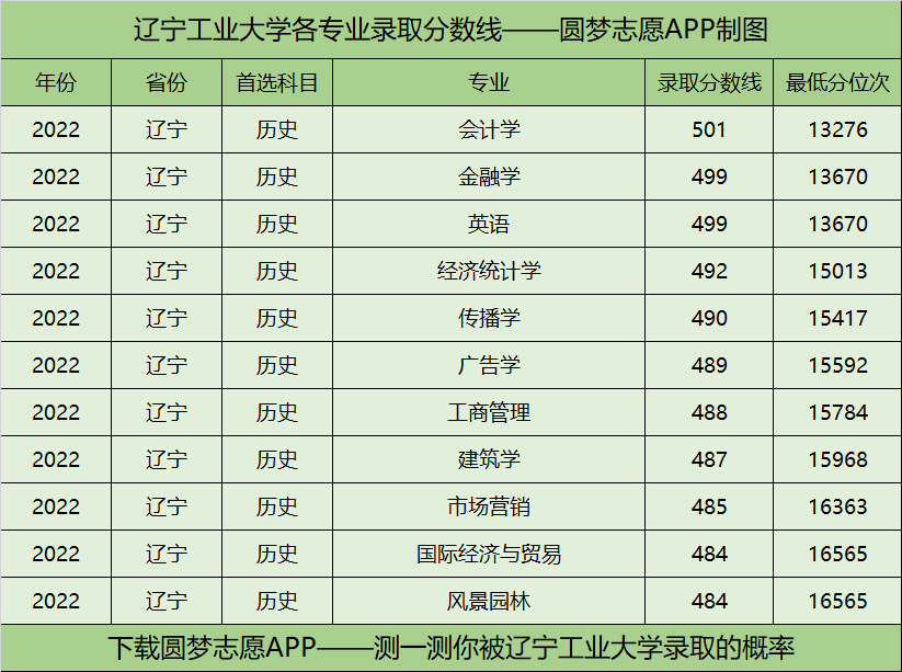 辽宁工业大学各专业录取分数线2022年是多少分?辽宁工业大学的最低分位次在全省排名多少?
