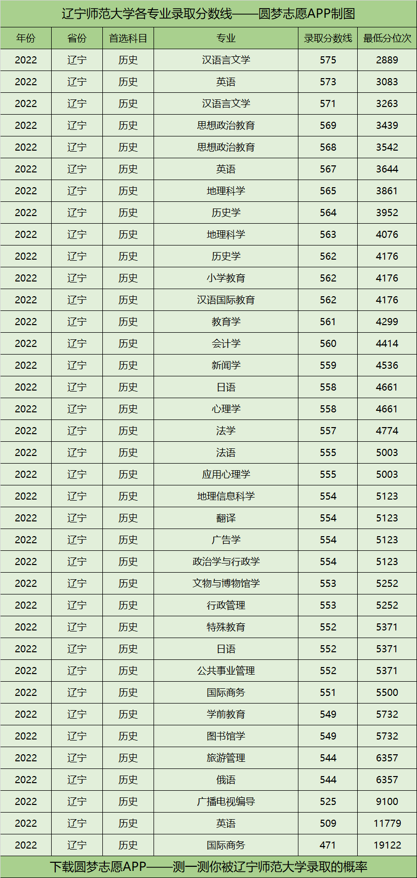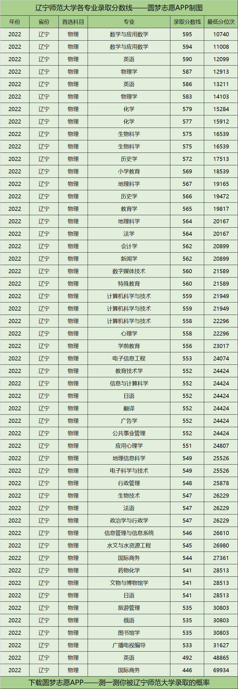 辽宁师范大学各专业录取分数线2022年是多少分?辽宁师范大学的最低分位次在全省排名多少?