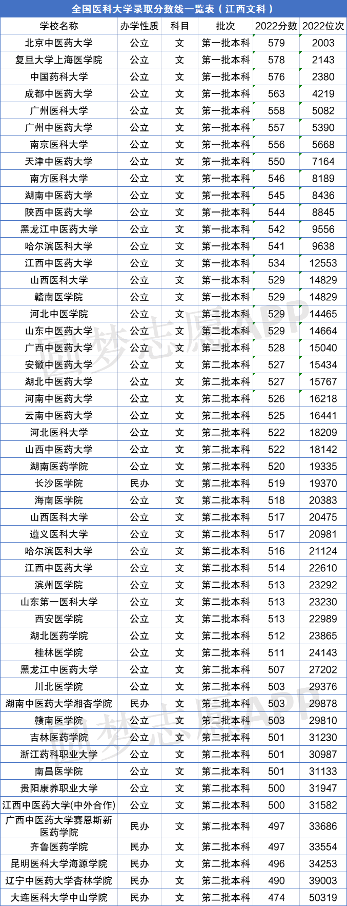 随着报考医学专业的越来越热门,医科大学的报考热度也是持续不减,因而医科大学每年的录取分数线也是持续不减。那么2022年医科大学的录取分数线是多少分?考医科大学一般要多少分?报考医学院最低多少分?在本文,小编整理了全国医科大学录取分数线排名2022最新排名一览表汇总,包含江西、江苏省,供同学们参考。