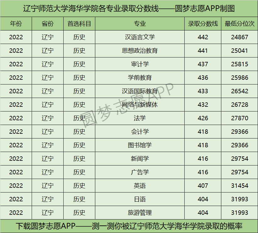 辽宁师范大学海华学院各专业录取分数线2022年是多少分?辽宁师范大学海华学院的最低分位次在全省排名多少?