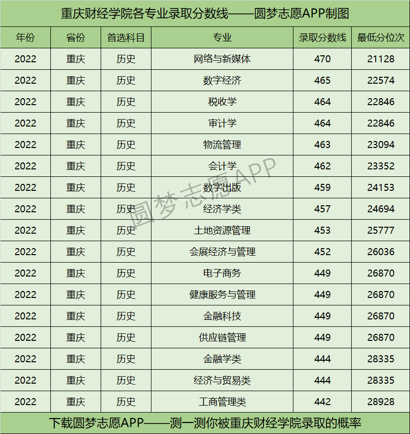 重庆财经学院各专业录取分数线2022年是多少分?重庆财经学院的最低分位次在全市排名多少?