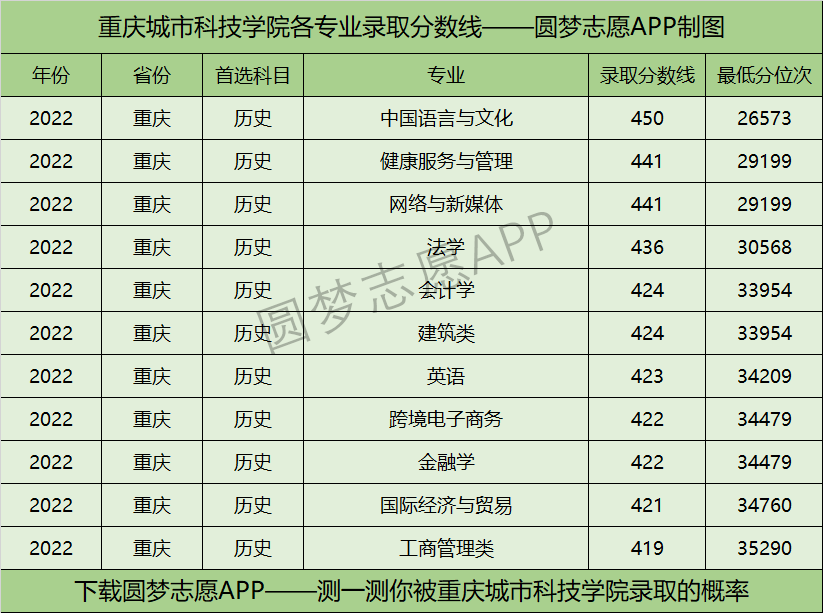 重庆城市科技学院各专业录取分数线2022年是多少分?重庆城市科技学院的最低分位次在全市排名多少?