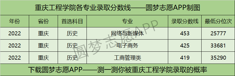 一、重庆工程学院各专业录取分数线2022是多少分?