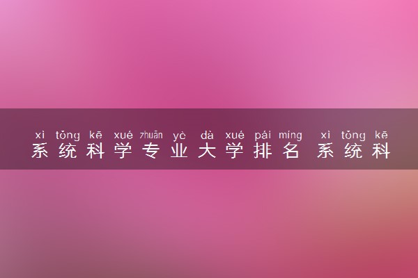 在教育部系统科学学科评估结果中, 全国系统科学排名前十的大学有北京交通大学、国防科技大学、上海理工大学、北京师范大学、云南大学、青岛大学、四川大学、重庆师范大学(系统科学学科只有8所大学上榜)。