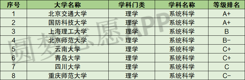 下表是黑边网整理的系统科学学科评估完整结果。
