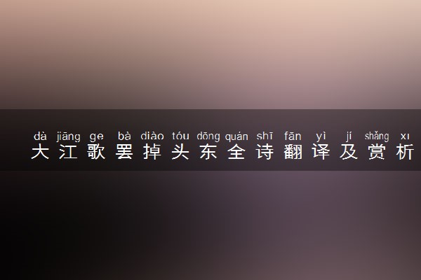 “大江歌罢掉头东”起句气势雄伟,表达了周恩来负笈东渡寻求真理的决心。“大江歌罢”指刚唱罢令人豪情四起的苏轼词《念奴娇·赤壁怀古》,其词开篇即有“大江东去,浪淘尽,千古风流人物”的'句子。