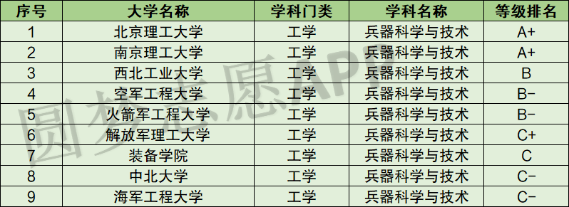 在教育部兵器科学与技术学科评估中全国共9所大学上榜,它们都可以认为是全国兵器科学与技术中最好的一部分大学。