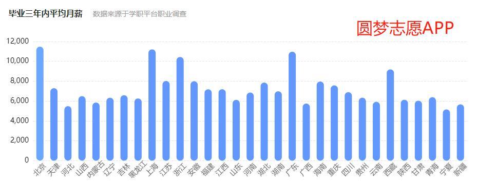 交通运输专业毕业生平均月薪最高的地区为北京、上海、广东,最高在10000元以上,最低的地区为河北、广西、宁夏,最低在4000元以上。(数据来源于学职平台职业调查)