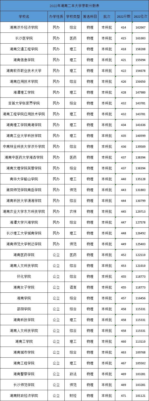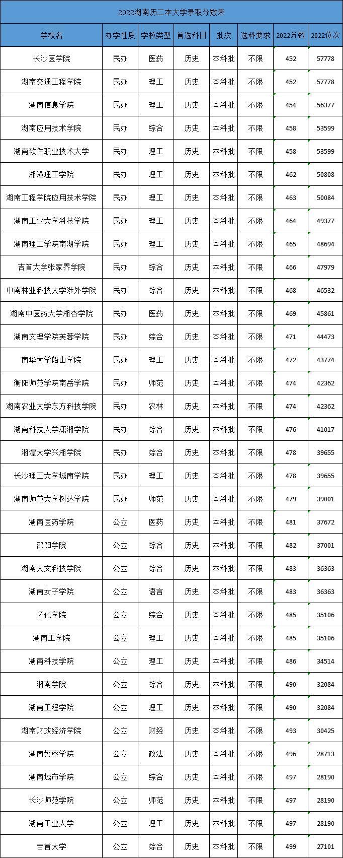 一、湖南二本大学录取分数线
