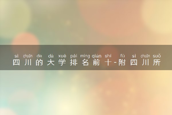 根据2022年校友会中国大学排名表,四川排名前十的高校分别是四川大学、电子科技大学、西南交通大学、西南财经大学、四川农业大学、西南石油大学、成都理工大学、四川师范大学、西南民族大学、成都中医药大学。下面小编就为大家来介绍这十所大学。
