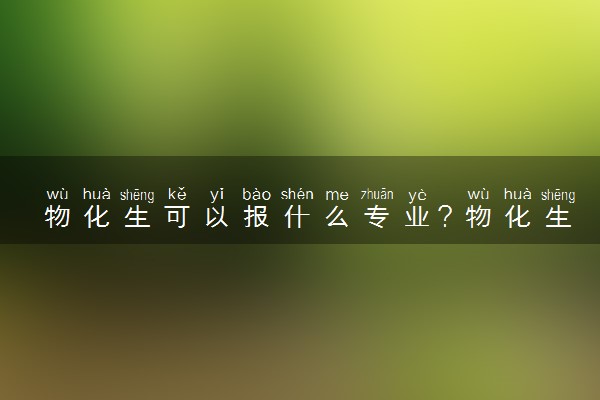 物化生可以报考的专业有计算机科学与技术、软件工程、材料化学、应用化学、工程造价、临床医学、应用数学、生物科学、食品科学与工程、地理科学、大气科学、口腔医学等专业。
