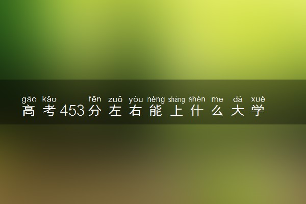 高考453分左右能上的大学有渤海大学(中外合作)、岭南师范学院、邯郸学院(中外合作)、广西艺术学院、山东工商学院(中外合作)、新疆科技学院、兰州石化职业技术大学、江苏商贸职业学院等。