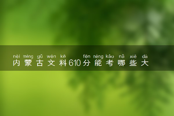 内蒙古文科610分可以报的大学有:中国人民大学、南开大学、武汉大学、南京大学、浙江大学。考生要找准自己在全省考生中的位置,根据实际位次更准确选择报考的院校。