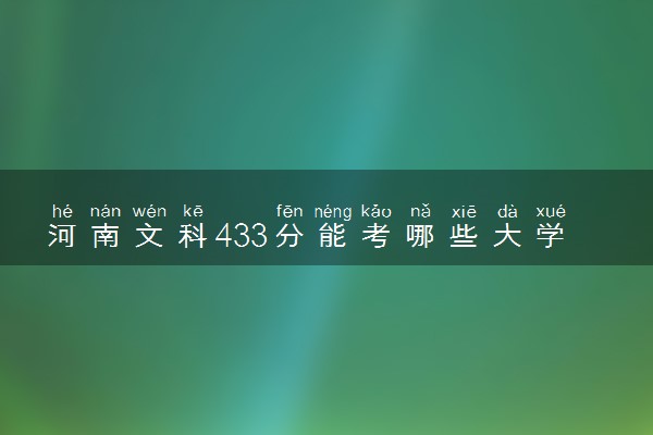 河南高考文科433分招生录取的大学有:三江学院、上海中侨职业技术大学、上海外国语大学贤达经济人文学院、上海师范大学天华学院、上海建桥学院。各位考生在选择志愿时,考生要根据自己的特点、兴趣和志向,明确职业发展,并以此来选择学校和专业类别。