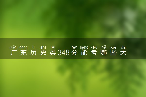 广东高考历史类348分招生录取的大学有:三亚城市职业学院、上海出版印刷高等专科学校、上饶幼儿师范高等专科学校、上饶职业技术学院、乌海职业技术学院。各位考生在选择志愿时,考生要根据自己的特点、兴趣和志向,明确职业发展,并以此来选择学校和专业类别。